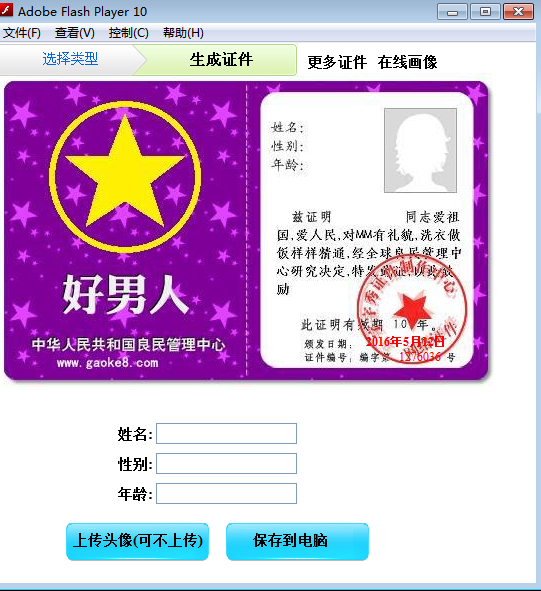 搞客吧搞笑证件软件是一款制作各种好玩证件的证件制作工具,软件可以制作30种各种搞笑的证件,男女通用,是不是很强大呢?喜欢的朋友赶紧下载使用吧。