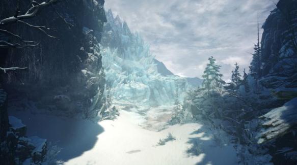 虽然是雪地场景,但永霜冻土可绝不只是延绵不绝、覆盖一切的单调白雪,你会见到蒸腾的温泉、深邃的洞窟、壮观的峭壁、新的或回归的怪物栖居其中,有些住在石质的底层,有些则穿行于尖利的冰锥。