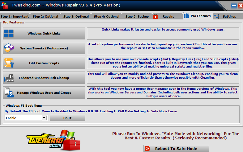 Windows Repair是一个全能型的系统修复工具,能将你的Windows恢复到初始设置。可以帮你解决诸如注册表权限问题、IE、自动更新、防火墙等等一系列故障。