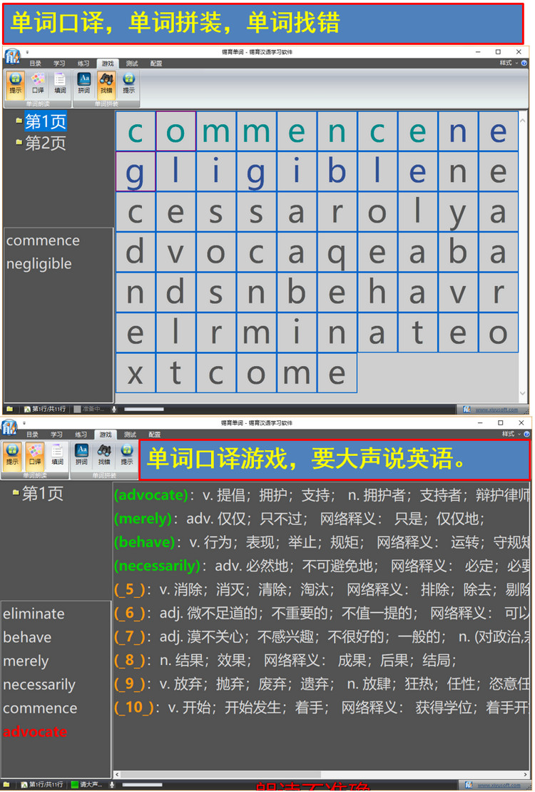 7. 单词听写练习:可以设定单词播放次数,时间间隔等来实现单词听写。
