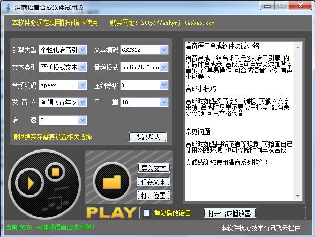 温商结合了讯飞云3大语音引擎,软件内置了语音合成软件,语音合成后还可以添加背景音乐,让你的语音变得个性化,简单易操作,可合成语音宣传、等。