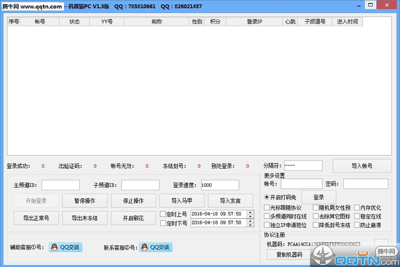 第五步:导入账号 输入频道 开始登陆!
