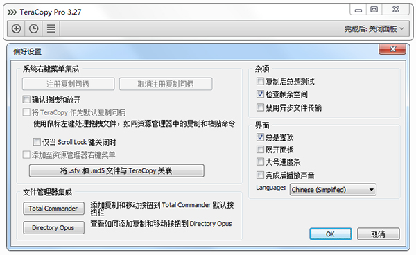 7、与Windows紧密集成,TeraCopy 完全可以替换资源管理器中复制和移动功能,像往常一样甚至比以往更方便地传输文件