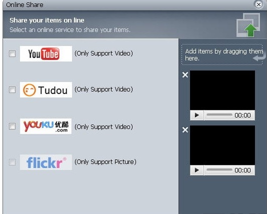 提供直接将编辑视频上传到,Flickr和其他在线视频服务的功能