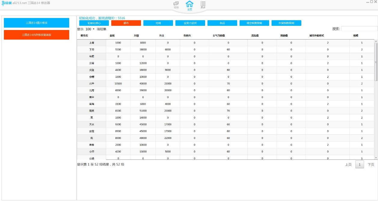 2.在右侧的搜索栏输入想要修改的都市、名品、武将、地域名即可显示对应的数据表格。