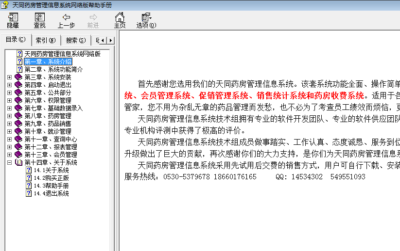 进入系统选择【关于系统】菜单下的【帮助手册】菜单就会调出本帮助手册,如下图所示。
