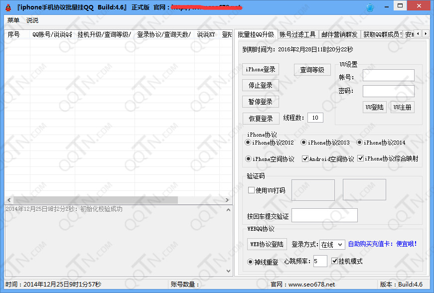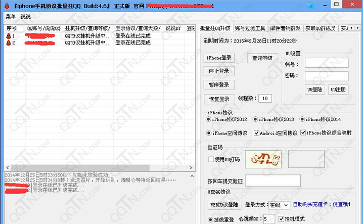 支持iphone批量挂QQ在线,支持WEB协议挂QQ,增加筛选重复帐号.邮件群发等功能!