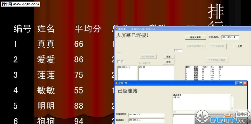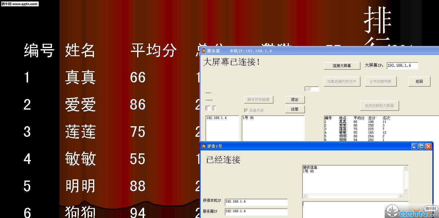 3.服务器,评委端,大屏幕可在同一台电脑上连线使用,多个评委端测试时请将ip最后一位更换不同值。
