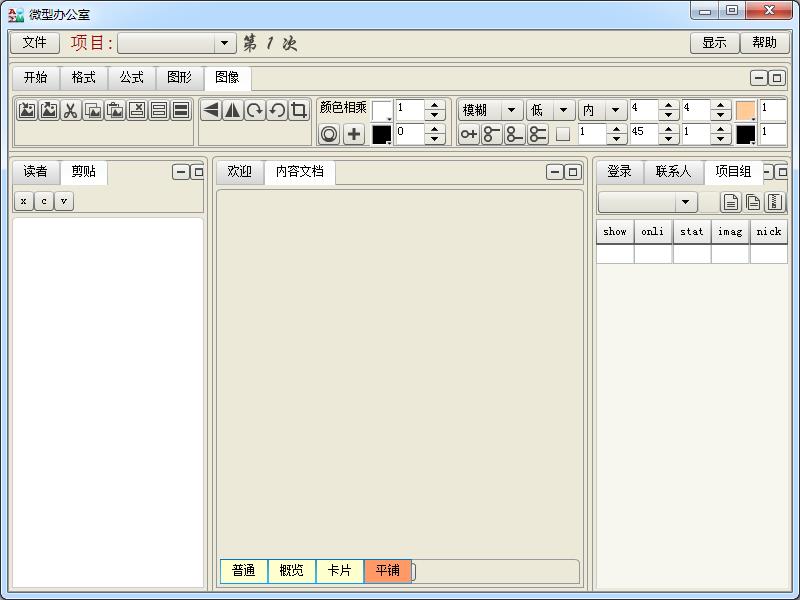 微型办公室官方版是一款全能的跨平台多类型文档编辑、交流软件,当前包含文字(富文本)编辑器、数学公式编辑器、矢量图形编辑器、图像(图片)编辑器,同时包含XMPP即时通信客户端。微型办公室对于文字排版可在一定程度代替传统桌面软件,对于图形、图像编辑具有一定优势,可以编辑教育教学文档、新闻报道文档、商品信息文档……,特别适合于编辑微文章、长微博,可以导出图片发布,也可以直接发送、接收可编辑文档,使即时通信不再局限于文本和只读图片,大大丰富了即时通信的形式和内容。