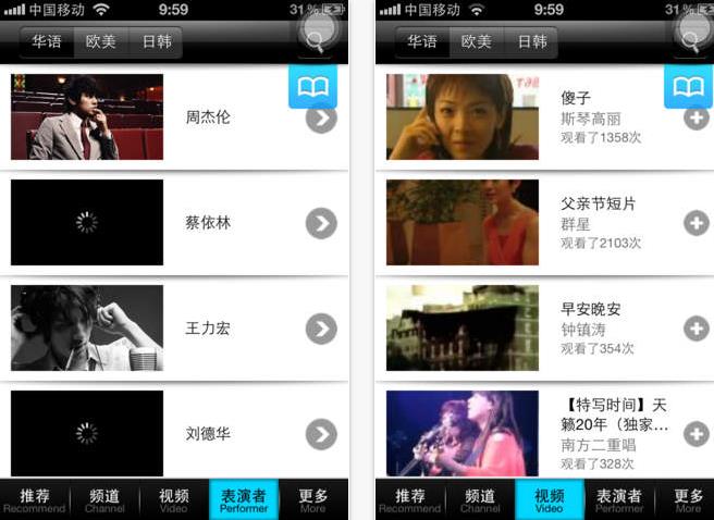 此次,除了优化UI与后台,更稳定快速地提供最全最新的MV、演唱会等高品质音乐视频内容外,完整功能正式在iOS开放!您即可以在首页获取我们每天推荐的好音乐,也可以通过视频库、明星库、搜索系统等更精准的找到你想要的内容,同时更可以通过我们的“移动音乐电视台”服务,定制、浏览个性化的在线频道发现更多惊喜!