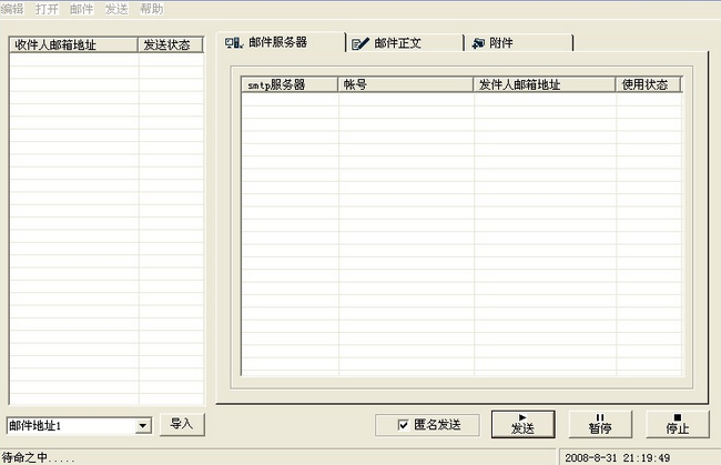 亿愿极速邮件SpeedEmailPlus是一款由亿愿网开发的邮件免费群发软件,功能强大,绿色无毒,安装即可用。支持匿名发送、抄送、密送、文本格式、网页格式和附件格式同时发送、多个附件发送等邮件发送功能,适合那些或者是推广的朋友。