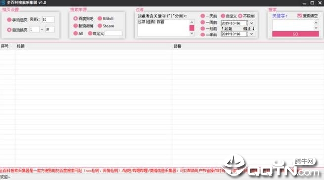 全百科搜索采集器是一款针对于与百度百科的内容搜索工具。只需要输入搜索关键词,就可以帮助你迅速轻松的采集到你所需要的贴吧、百科、B站等详细信息,非常的简单方便,需要的用户欢迎来腾牛下载使用。