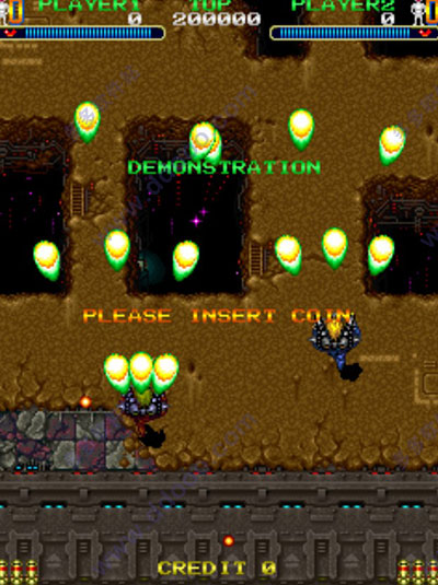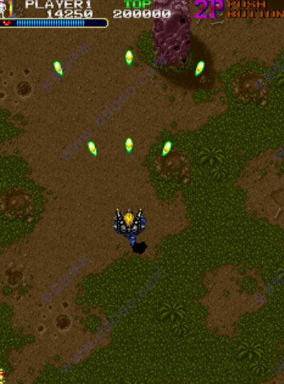 游戏有四种火力,普通子弹,散弹,火焰枪,火焰圈(这种应该是最厉害的,游戏厅里高手都选这个,路上可捡的(炸弹)也好多,最多可以存15个炸弹,再超过就算加分!