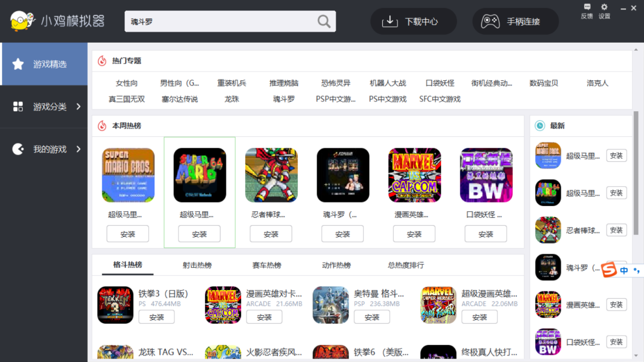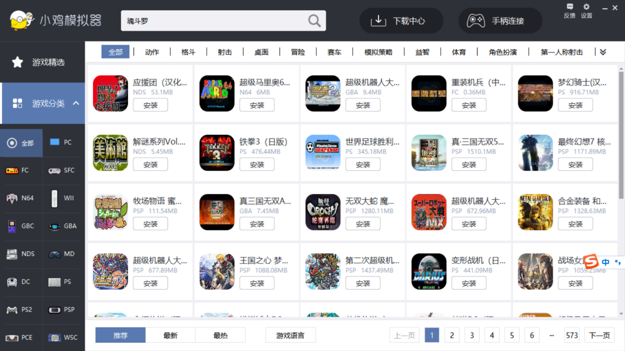 小鸡电脑版是一款完全免费的游戏模拟器,支持PSP、NDS、N64、PS1、WS、街机(CPS1,CPS2,CPS3,)、GBA、GBC、MD、SFC(SNES)、FC(NES)、以及PS游戏主机的模拟,完美运行上万款经典游戏,所有游戏安装均一键完成,简化用户操作,大大节省了用户寻找游戏、测试游戏是否可运行的时间。