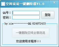 zimQQ一键批量删除工具是一款能批量删除QQ空间说说的小工具,您只需要一键登录,选择相应的说说,单击删除即可,欢迎下载使用。