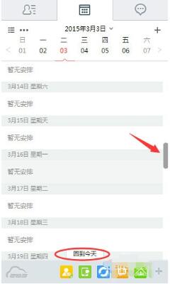 在日程管理界面上下滚动滑轮,即可浏览事件或者将来需要完成额事件;点击下面“回到今天”按钮,即可快速回到当前时间的日程