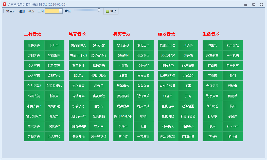 6、一个按钮都可以自定义设置音效文件、快捷键、按钮大小,按钮背景、自由拖动、改变整体布局等等设定。这款软件拥有着清爽干净的界面,操作起来也是非常的,现在网络上有很唱歌听起来很好内置录音 录像 拍照等个性功能!推荐使用内置5.1和7.1 的声卡!外置(客所寺PK3、森频外置、艾肯外置),能支持IO的声卡,都能够完美的支持本软件!