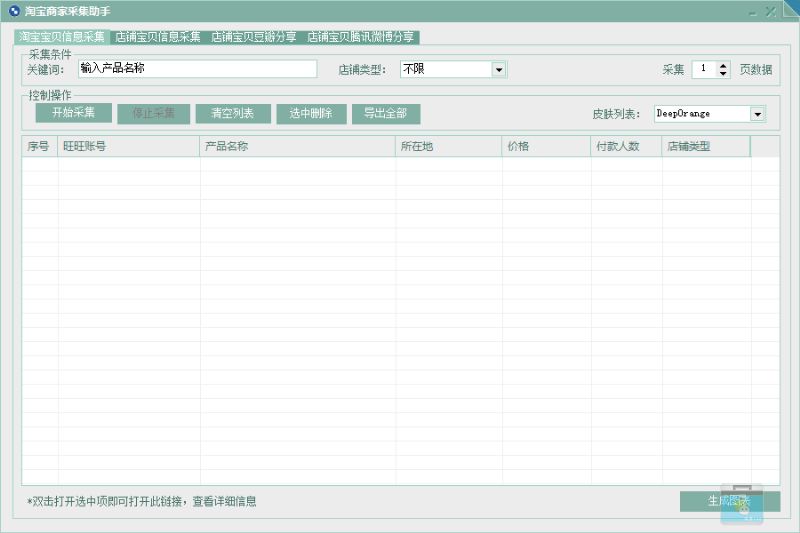 淘宝宝贝信息采集:输入需要采集的产品名称关键词,选择店铺类型;