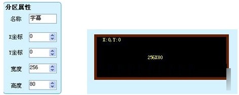 模拟显示区域中,区域的左上角定义为起点坐标。起点x、起点y分别表示当前显示区域偏移起点的横向、纵向长度。单位象素点。高度、宽度表示显示区域的有效高度、宽度。单位象素点;用鼠标选中模拟显示区域中的字幕区域然后拉大;或者在字幕属性中键入起点坐标,高度和宽度,如下图