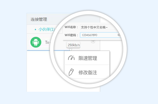 第三步: 限速管理-----------选择要限速的设备名称---------点击限速管理---------拖动要限速设备下的下上的倒三角形滚动图标进行限速: