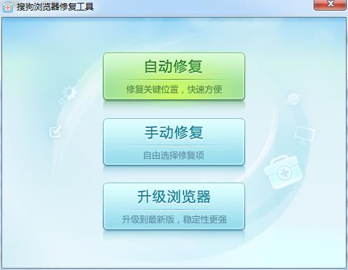 修复工具是一款专门用来修复搜狗浏览器的一款修复工具,是从搜狗浏览器中单独提取出来的,可以独立使用。使用过搜狗浏览器的用户,会经常遇到搜狗浏览器出现崩溃或是找不到页面的情况。那你使用这款搜狗浏览器修复工具,就能轻松修复,解决搜狗浏览器常见的问题。
