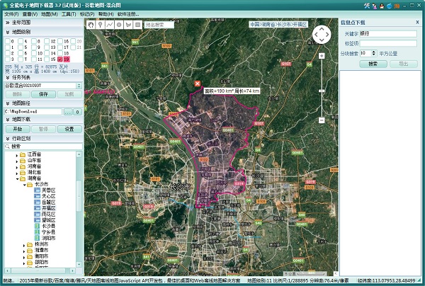 4. 下载方式灵活多样,使用方便,只要拖动几下鼠标,就可按圆形,矩形,不规则多边形和行政区范围下载。