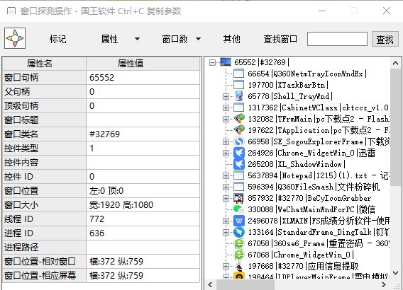 窗口探测操作软件,电脑窗口查看管理工具,支持标记、窗口属性管理、窗口查找、窗口数查看等功能,更好掌握软件信息,帮助用户轻松进行窗口探测操作。