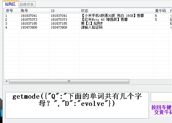 如果点击抢购,出现<GMODE "Q":"">说明获取验证码渠道正常,小米官方没有更改验证码机制,不是代码出错,也不是乱码