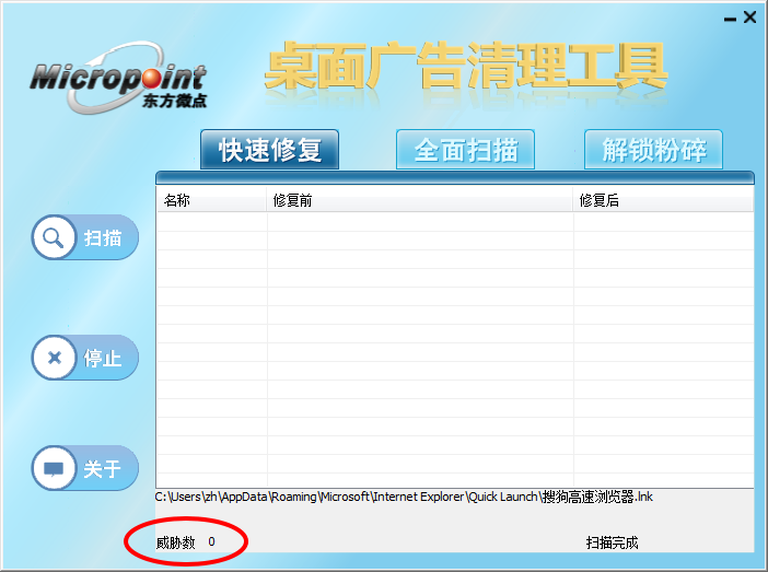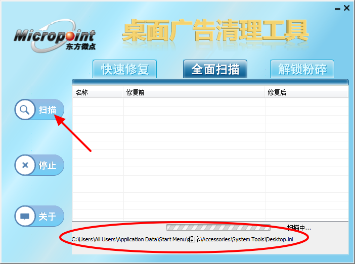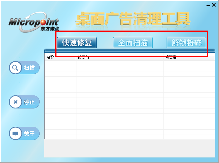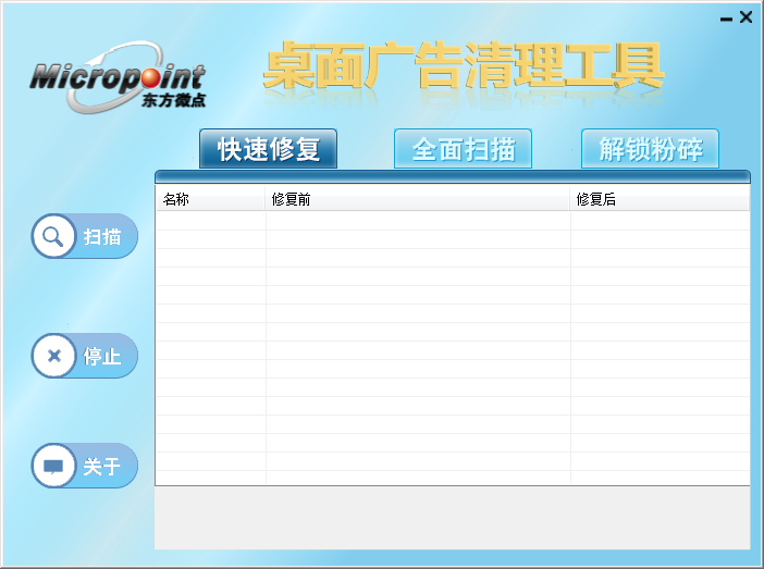 桌面清理工具是一款强大的桌面,这款软件能够针对流氓软件在桌面上建立的顽固图标进行彻底清除,它可以帮助用户对存在于电脑桌面上的广告或者感染的顽固图标进行快速处理,整个处理过程非常简单,包括全面扫描、快速修复、解锁粉碎三个步骤,欢迎各位下载使用!
