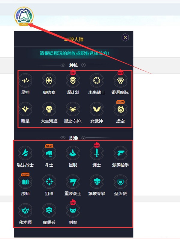 展开之后会展示出种族和职业,点击之后会有相关的推荐阵容。