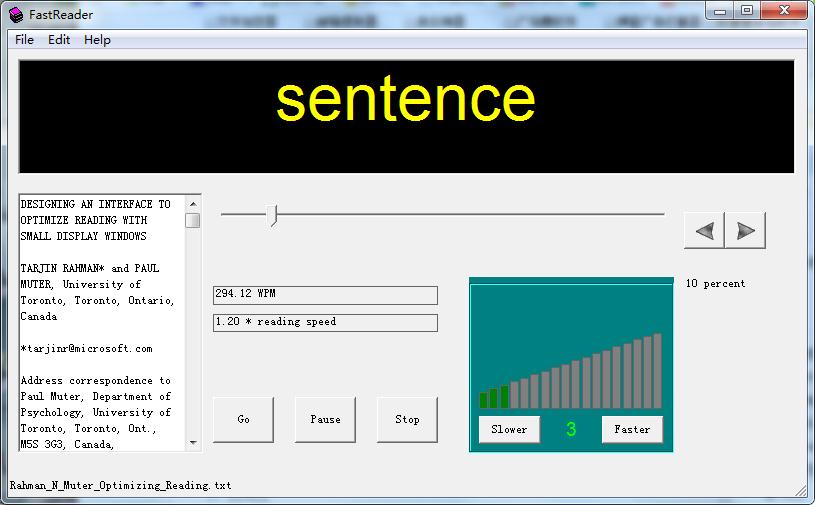 只需打开一个文件或通过剪贴板过去,然后单击开始。 读者可以通过单击慢速和快速来调整流文本的速度