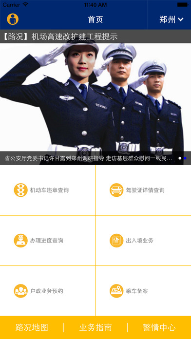 随着互联网时代的更新和加快,河南公安为把握移动互联网和大数据的时代脉搏,为民众提供的一项电子服务平台,即“河南公安互联网便民服务平台”,也是政府电子化办公的重要部分。警民通为这一服务的移动平台,目前警民通App已经具备了机动车、公安业务办理点查询、办理业务预约、办理进度查询、等便民服务功能。