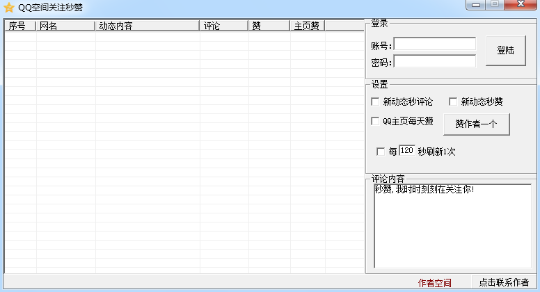 QQ空间关注是一款最新免费可用的QQ空间新动态秒赞秒评论软件。可以全自动挂机工作。可以查看到软件详细的操作日志,如秒赞秒评论的对象名称、动态内容、评论内容等信息。秒赞,是一种态度,我时时刻刻都在关注你!