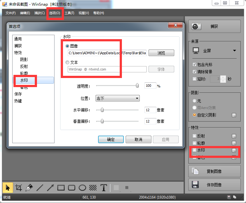 在没有使用winsnap之前,发现很多网上的教程图片。有类似阴影和变亮等特效以为很复杂。其实原来可以直接勾选这个功能就可以实现