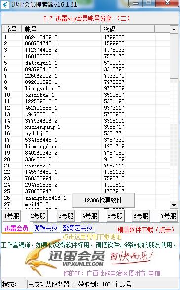 软件使用方便,界面,可搜索各个论坛中分享的迅雷账号密码,可支持云播。
