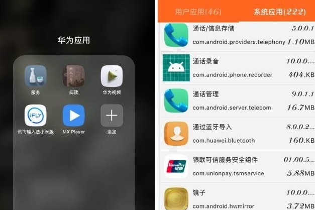 需要注意的是,它只会显示APP英文名,不会显示中文名。因此,大家最好先在手机上安装一个包名查看软件(下载文件中包含),用于英文名和中文名之间的对比。举个例子,我想卸载我的手机上的“阅读”这款系统应用。(利用软件查看APP英文名)首先,打开安装好的包名查看软件,进入系统应用栏目。找到“阅读”,发现它的英文名叫com.huawei.hwireader