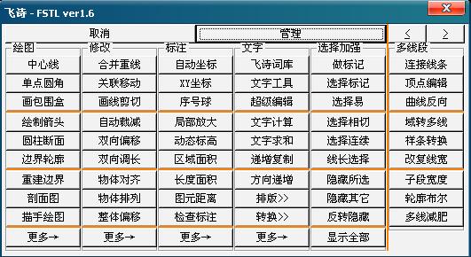 在命令行输入FST 打开飞诗CAD程序管理大一统配套程序组快单对话框;