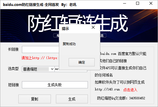百度防红是一款非常好用的网址生成器软件,它的功能十分强大,可以帮助用户将百度的网址缩短,这样就不会出现红色报警,感兴趣的朋友不要错过了,欢迎大家下载体验。