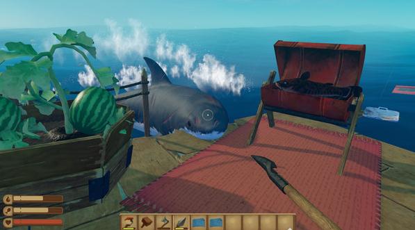 比如是地基,木板,楼梯,柱子等,一只锤就能解决任何与建造相关的问题。当鲨鱼攻击地基的时候要及时利用木质矛去反击,一来通过事后修补能减少相比建造木筏来说更多资源的消耗