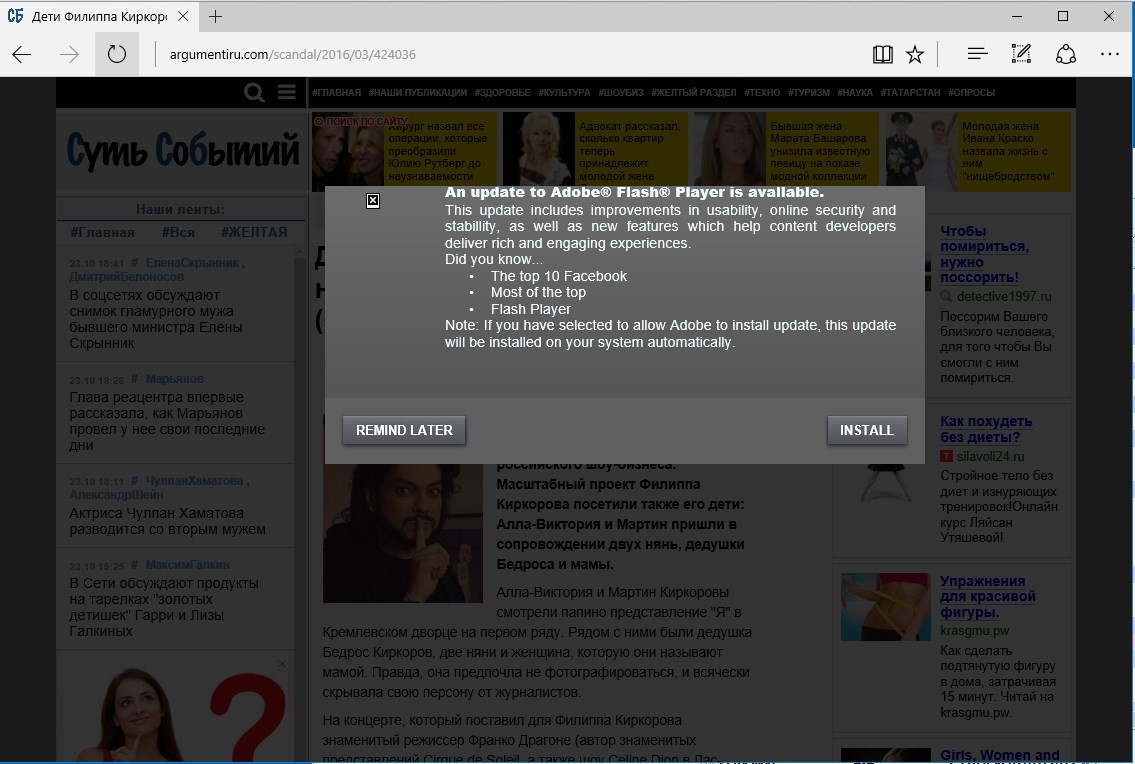 BadRabbit勒索病毒通过一些俄语系的新闻网站进行挂马传播,当中招者访问这些被挂马的网站,就会弹出伪装的Adobe flash player升级的对话框,一旦用户点击了“安装”按钮,就会自动下载勒索病毒。