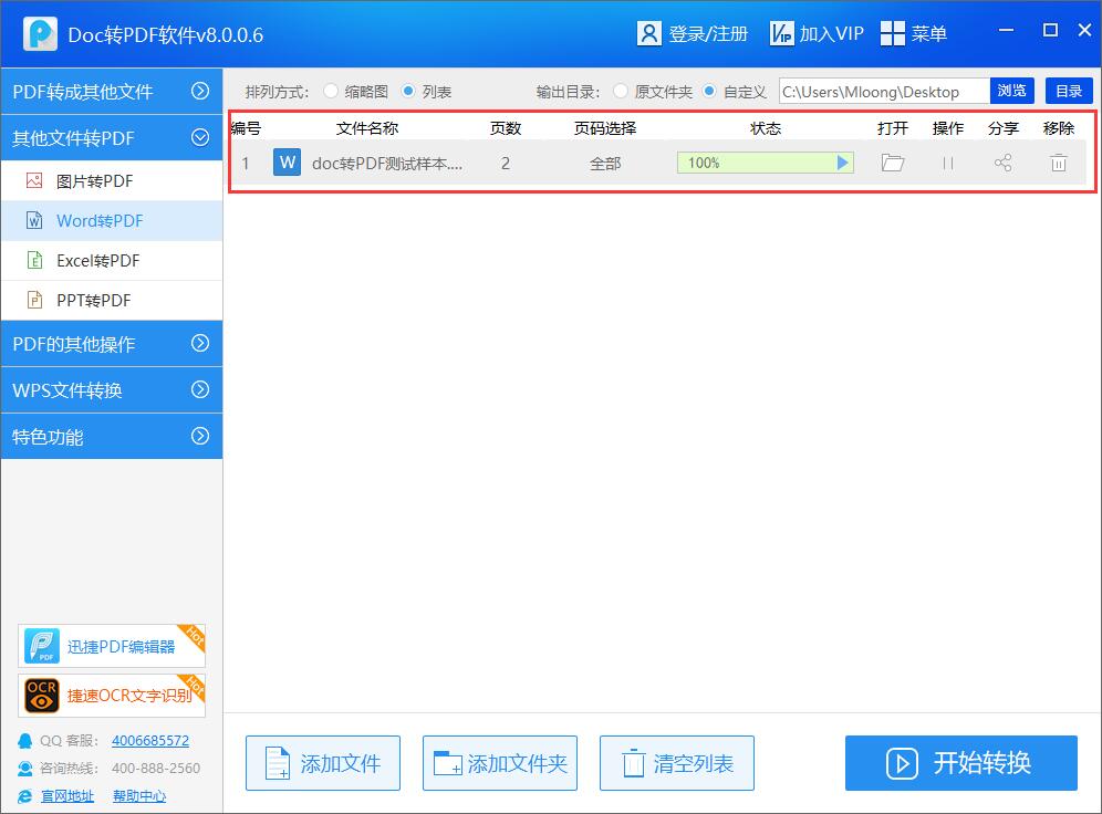 迅捷doc转pdf软件,可以免费帮助你将电脑中的word文件(doc格式)转换成PDF文件,并支批量转换哦。快来使用迅捷doc转pdf软件,更多格式转化等你来免费使用。