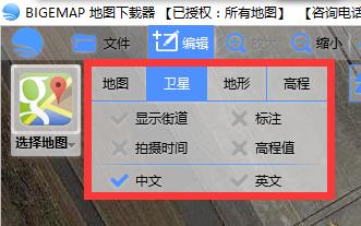 地图:代表电子地图;卫星:代表卫星地图;地形:代表地形图;高程:代表DEM和等高线地形图