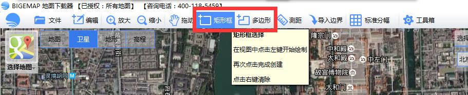 通过矩形框或者多边形框选你所需要的区域进行下载: