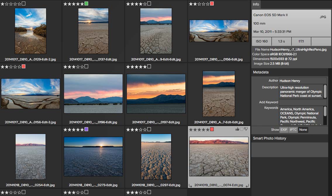 扑杀和编辑照片从拍摄。赶紧沟坏的,打分好的,并添加关键字。
