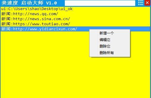 1.如第一幅图,当你把要打开的文件/文件夹/网址拖放到黄色区域,此时出现第二幅图【或者点击黄色区域选择“新增一个“】