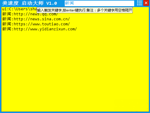 【备注:如果启动多个关键字,则中间用空格分开。在第三幅图中,如果我想打开ui文件夹和四个新闻网站,我就输入“ui 新闻”然后按下enter键即可】