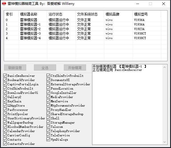 雷神精简工具是一款能够帮助用户降低模拟器占用性能的工具,能够有效降低模拟器负载,可以同时对多个模拟器端口进行处理,适合多开模拟器用户,让你能够开的窗口更多,有需要的用户欢迎下载使用!