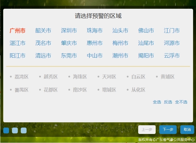 然后选择预警区域,再点下一步