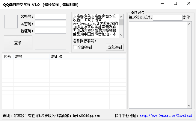 QQ群自定义签到是由于“欢子”制作,是一款超长签到的装逼利器,签到内容想写什么就写什么,并支持延迟设置。