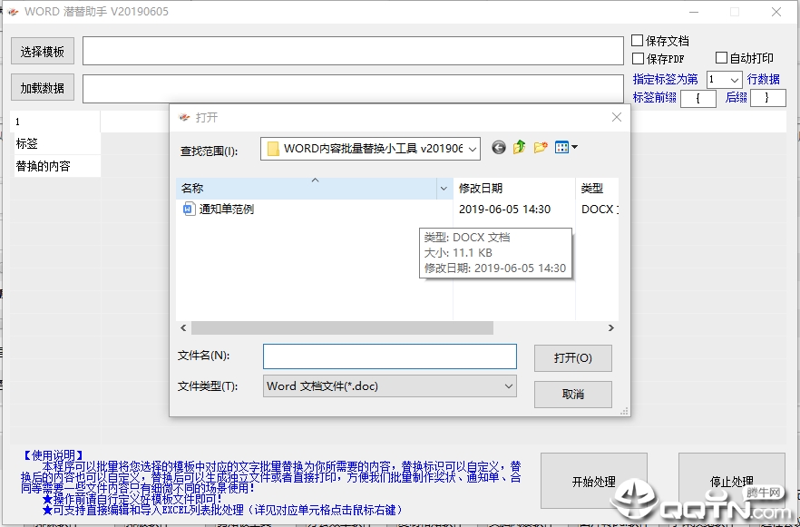1.本程序可以批量将您选择的模板中对应的文字批量替换为你所需要的内容,替换标识可以自定义,替换后的内容也可以自定义;
